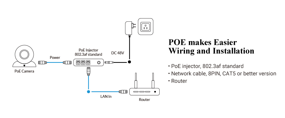 If you buy "48V POE Version", 802.3af standard, it can work with 48V PoE injector or 48V POE NVR