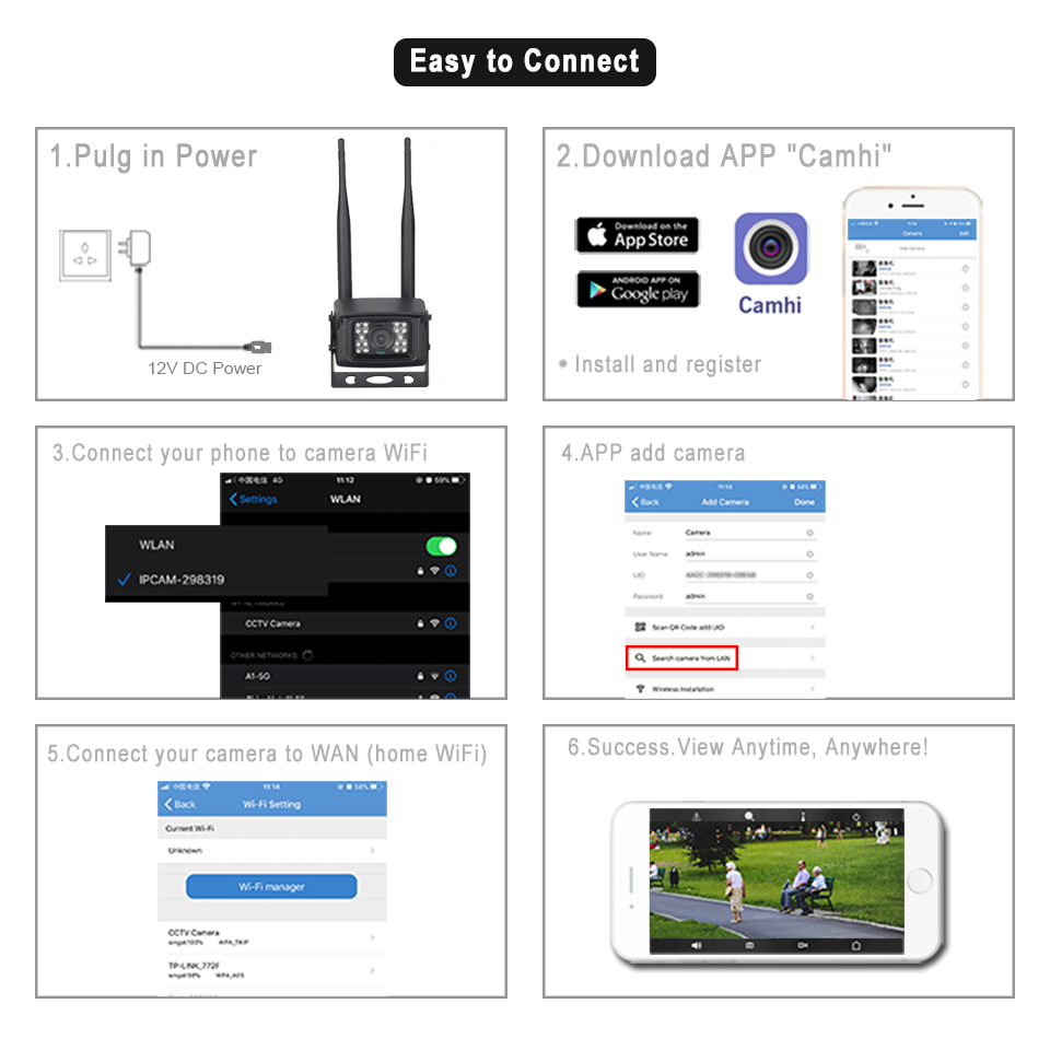 Просто Установите SIM-карту 3G/4G, сетевой кабель не нужен, вы можете подключить камеру для просмотра экрана наблюдения