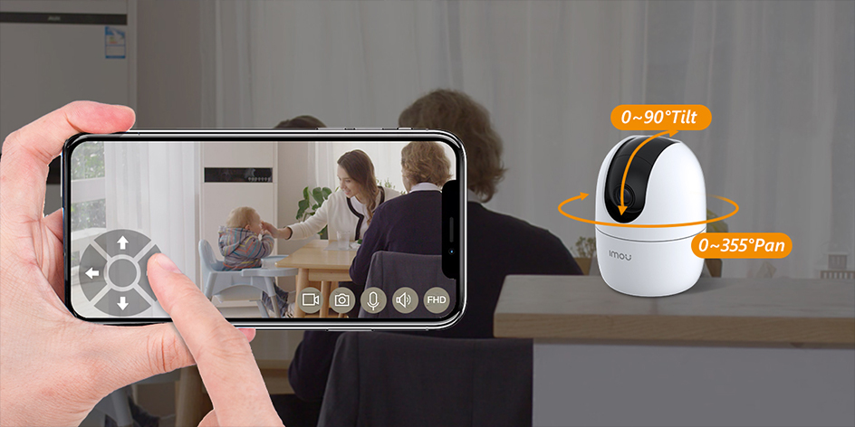 Вы можете перемещать камеру из стороны в сторону/вверх и вниз, свободно менять положение на место, где вы хотите найти с помощью смартфона. Поддержка дистанционного управления вращением камеры с функцией PTZ в приложении imou life.