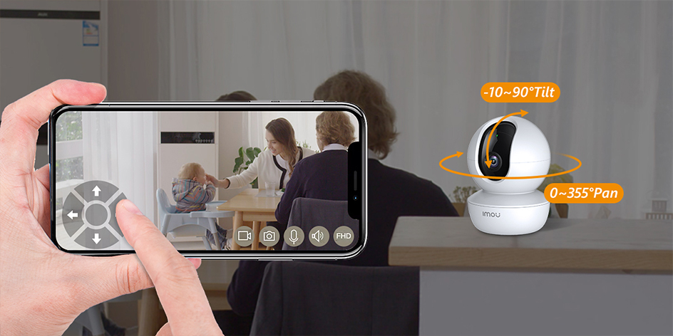 Вы можете перемещать камеру из стороны в сторону/вверх и вниз, свободно менять положение на место, где вы хотите найти с помощью смартфона. Поддержка дистанционного управления вращением камеры с функцией PTZ в приложении imou life.