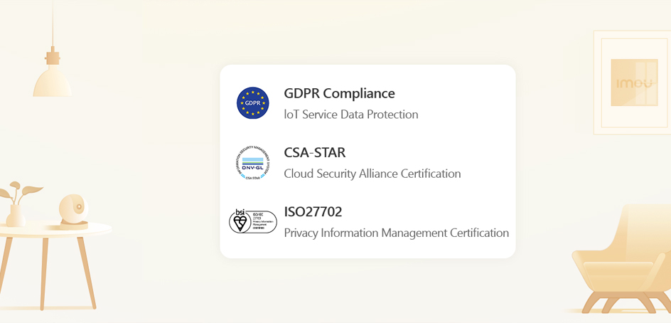 Делая конфиденциальность данных пользователей нашим главным приоритетом, Imou строго придерживается отраслевых стандартов безопасности, чтобы убедиться, что передача данных между устройствами и облаком Imou зашифрована от конца до конца.