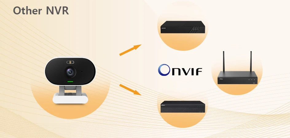 Эта камера работает с сетевым видеорегистратором, который соответствует ONVIF, что позволяет вам просто и удобно контролировать движение в комнате в любое время и в любом месте.