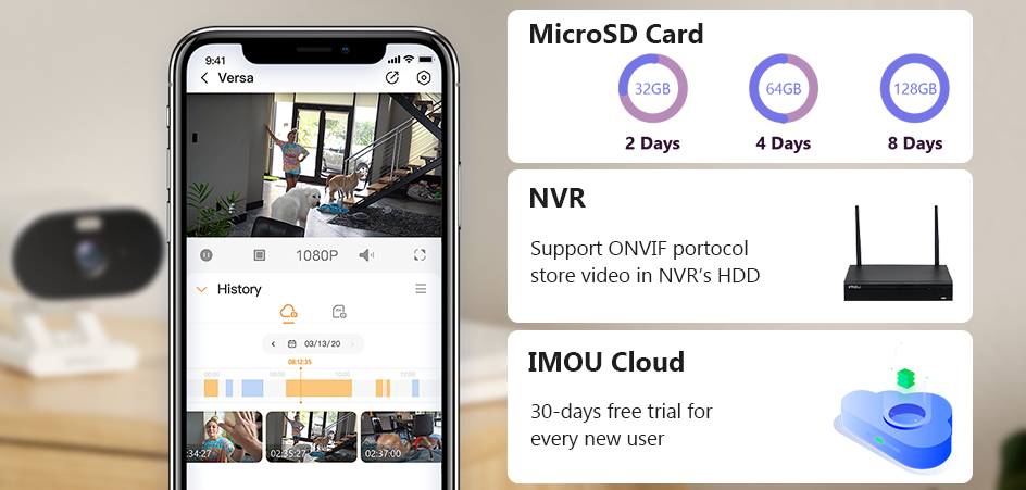 С несколькими вариантами хранения вы можете выбрать, где сохранить свои записи. WiFi-камера может даже сохранять во всех трех местах одновременно для дополнительного резервного копирования в случае повреждения камеры или сбоя вашей сети.