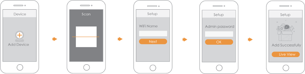 Подключите смартфон к сети Wi-Fi и убедитесь, что ваш смартфон подключен к сети Wi-Fi с диапазоном 2,4 ГГц, а затем выполните следующие операции, чтобы завершить добавление камеры.