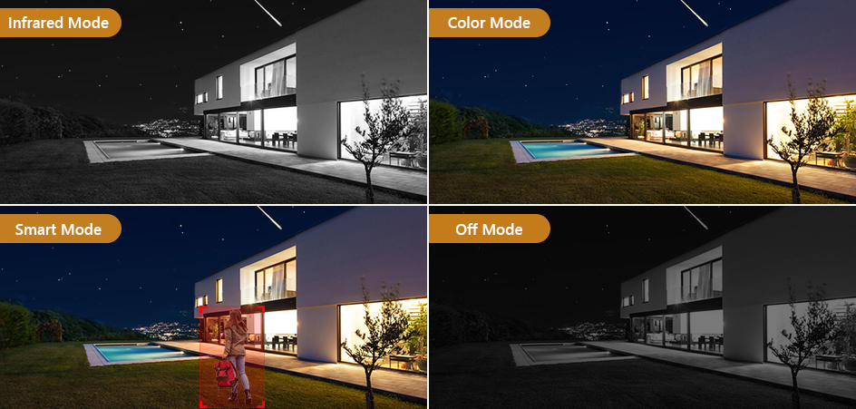Четыре интеллектуальных режима ночного видения обеспечивают четкое полноцветное или черно-белое изображение даже в полной темноте.