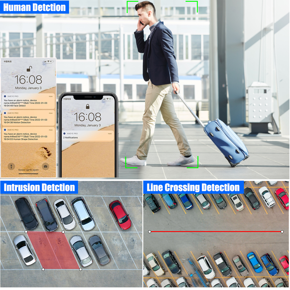 Вы можете создать несколько параметров обнаружения движения для камеры, включая обнаружение человеческого тела, обнаружение пересечения линий, обнаружение вторжений и обнаружение определенных регионов.Умное Распознавание лиц AI/Распознавание лиц/воспроизведение лиц