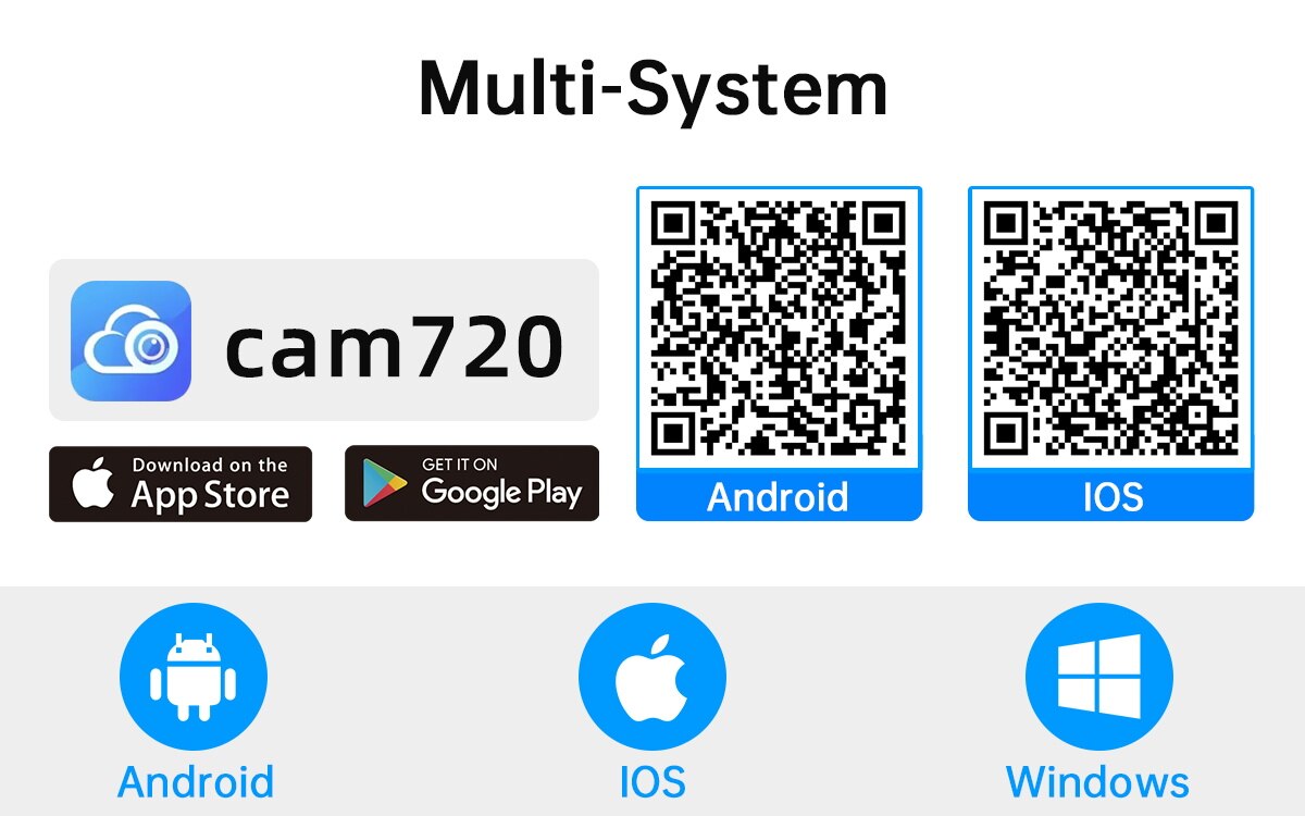 Эта камера работает только с приложением cam720. Вам просто нужно загрузить приложение cam720 из Goole Play или Apple Store и подключить камеру через Wi-Fi 2,4 ГГц или 5 ГГц.