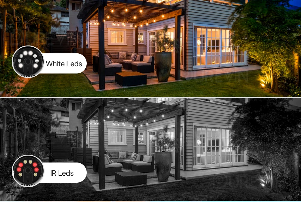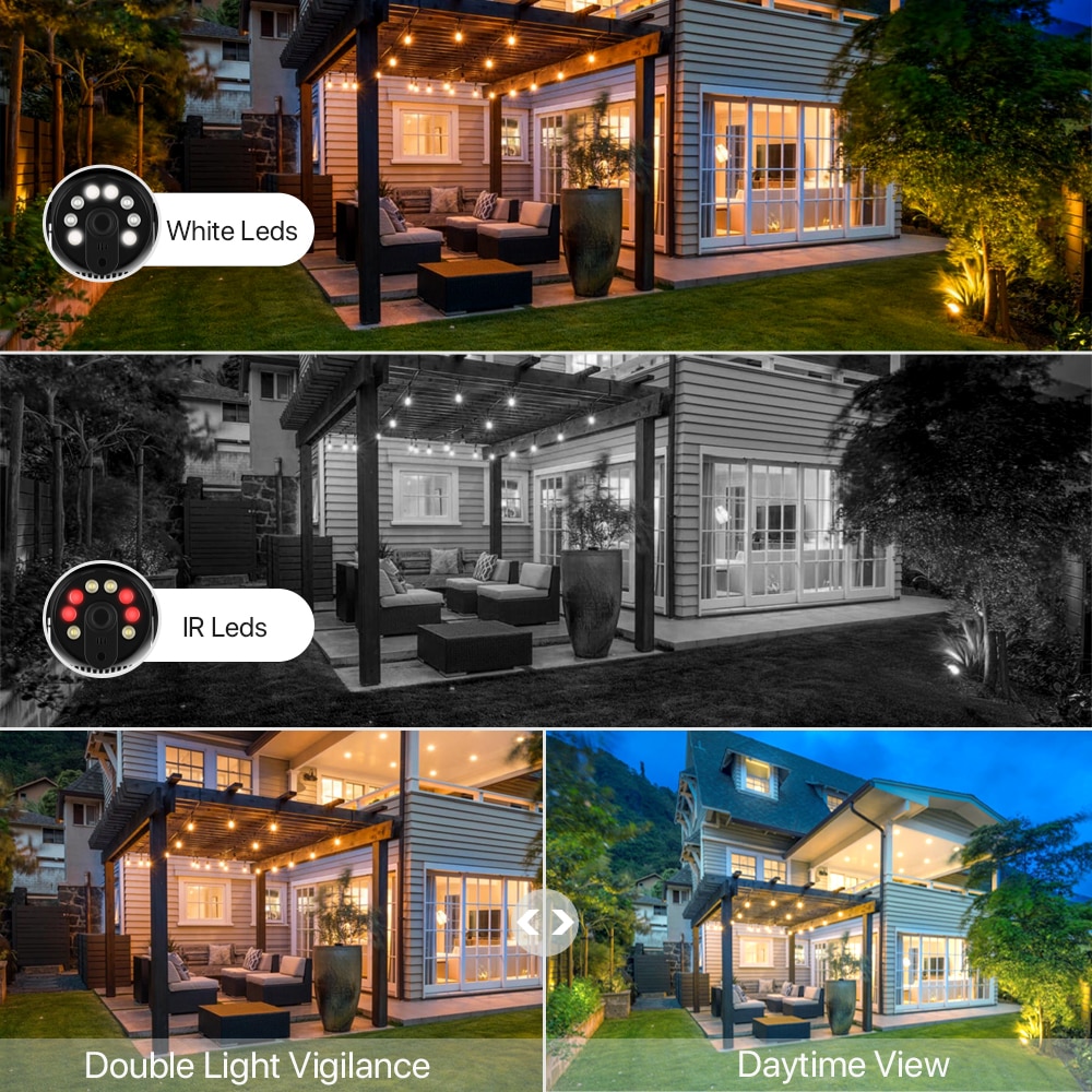 Благодаря 4 шт. Белый светодиодный и 4 шт. эффективный ИК-светодиодный, он предоставляет вам четкое и приятное видео как днем, так и ночью.