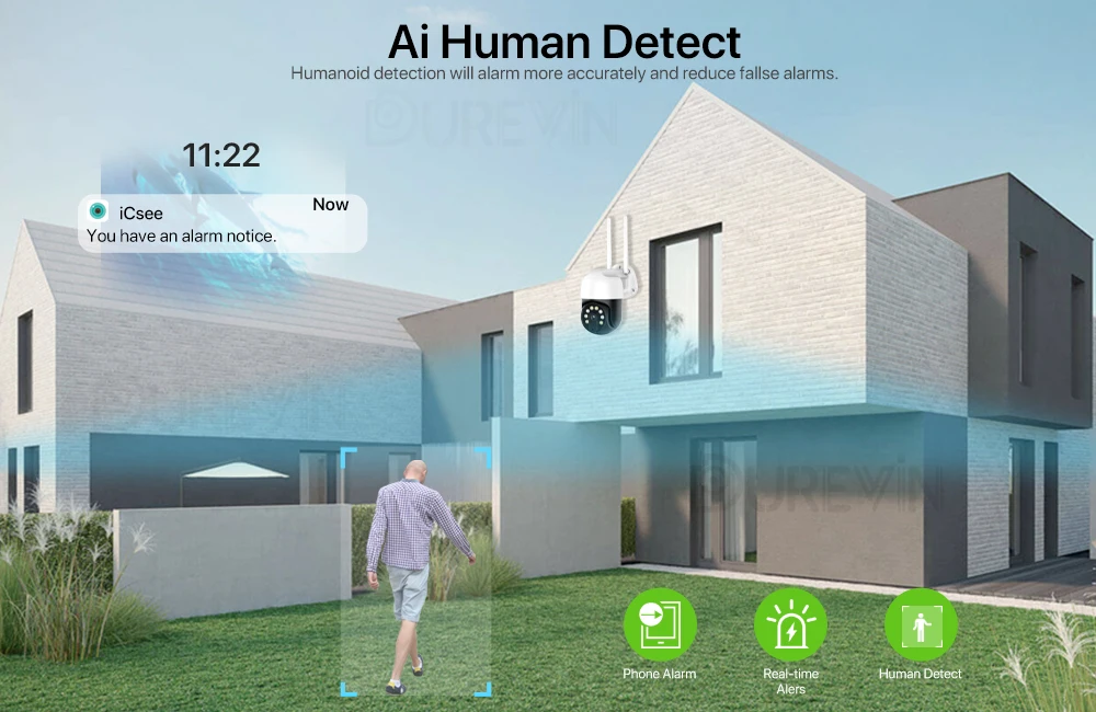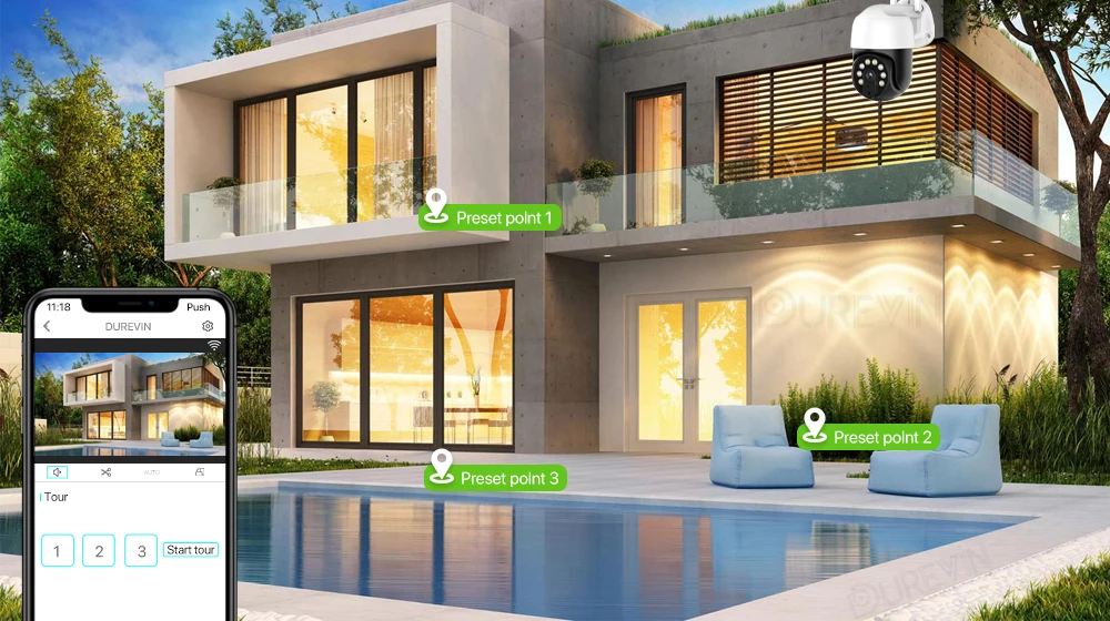 С сигнализацией обнаружения человека и сигнализацией отслеживания движения камера может обнаруживать и следить за человеческим путем в инфракрасном режиме и в режиме цветного ночного видения.
