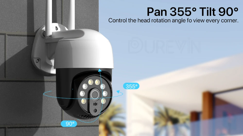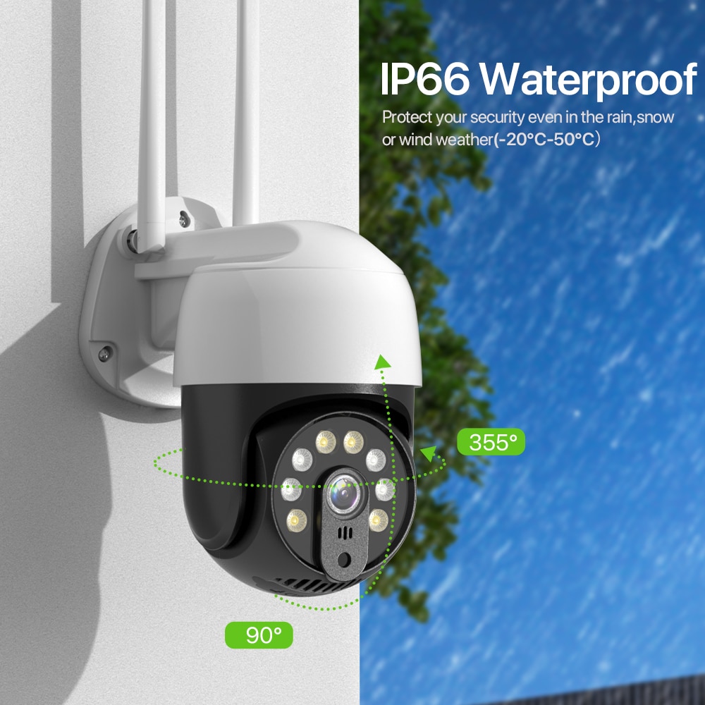 Эта PTZ WiFi камера имеет прочный корпус и корпус, Уровень водонепроницаемости IP66 делает ее идеальной для наружного наблюдения. Он может выдерживать суровые погодные условия. Включая дождь, снег, сильный холод и тепло