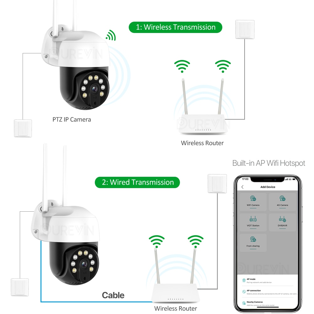 Вы можете выбрать удобное соединение по вашему желанию. Иногда у вас может быть только один способ подключения камеры, не волнуйтесь, эта камера поддерживает беспроводное и проводное соединение одновременно.