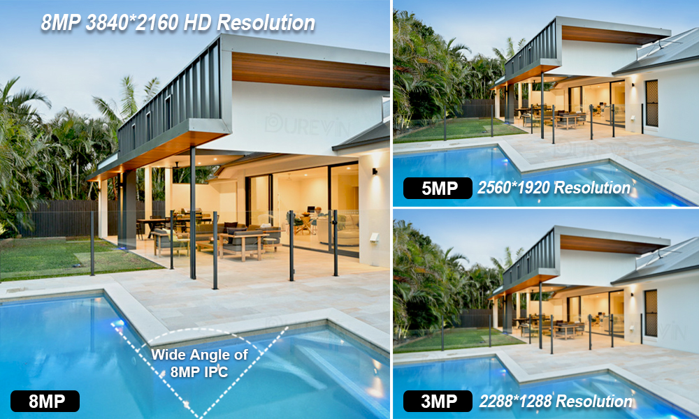 Три вида пикселей на выбор. 8 Мп имеет более высокую четкость-превосходит 3MP и 5MP. Подарите вам гладкий и потрясающий супер HD опыт.