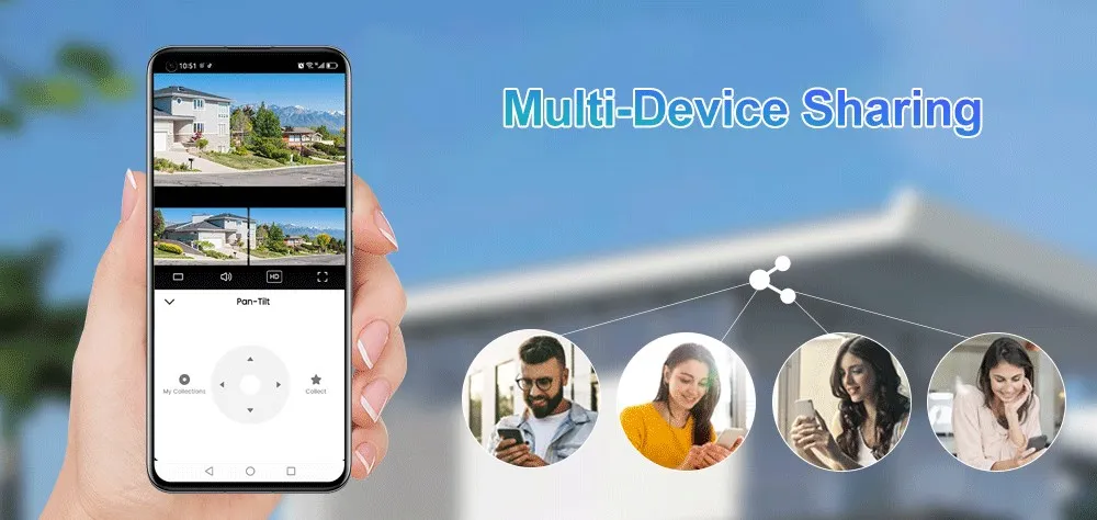 Поделитесь доступом к камере с семьей или друзьями, просто отсканировав QR-код или введя UID камеры и пароль. Поддержка одновременного добавления на несколько мобильных устройств, например: например, смартфоны (Android/IOS)