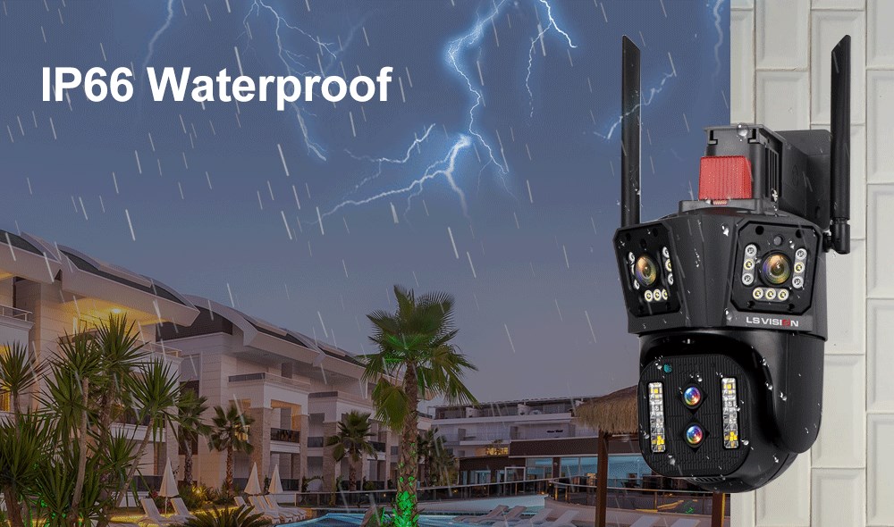 Наружная камера безопасности оснащена защищенным от атмосферных воздействий корпусом со степенью защиты IP66, предназначенным для работы PTZ-камеры видеонаблюдения даже в экстремальных погодных условиях.