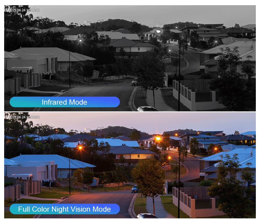Поддерживает полноцветный режим, инфракрасный режим и режим предупреждения с двойным освещением (инфракрасное ночное видение отображается, когда объект не движется, и белый свет будет включен, чтобы переключиться в полноцветный режим после обнаружения движения).