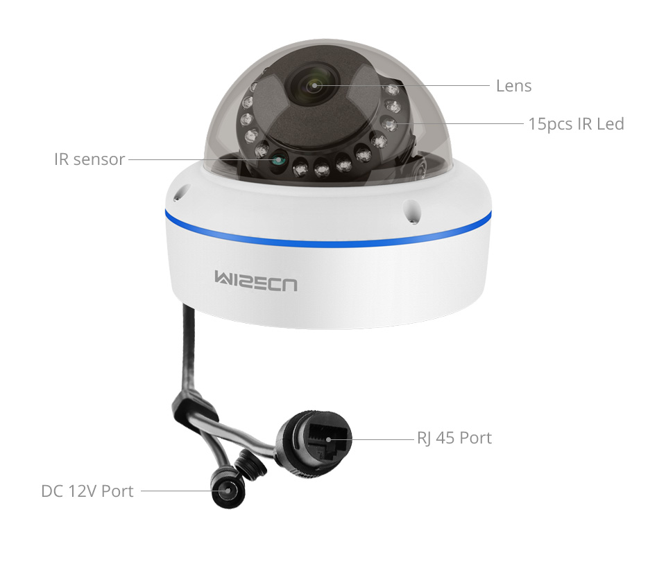 • Питание: DC 12V 2A(DC 12V версия) или 48V PoE коммутатор (PoE версия)