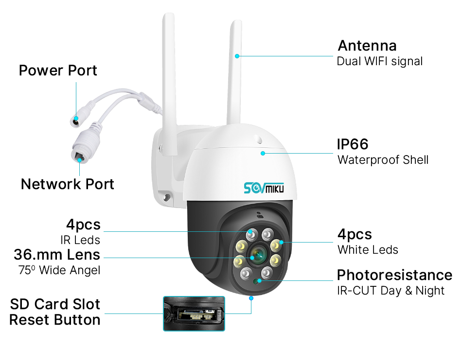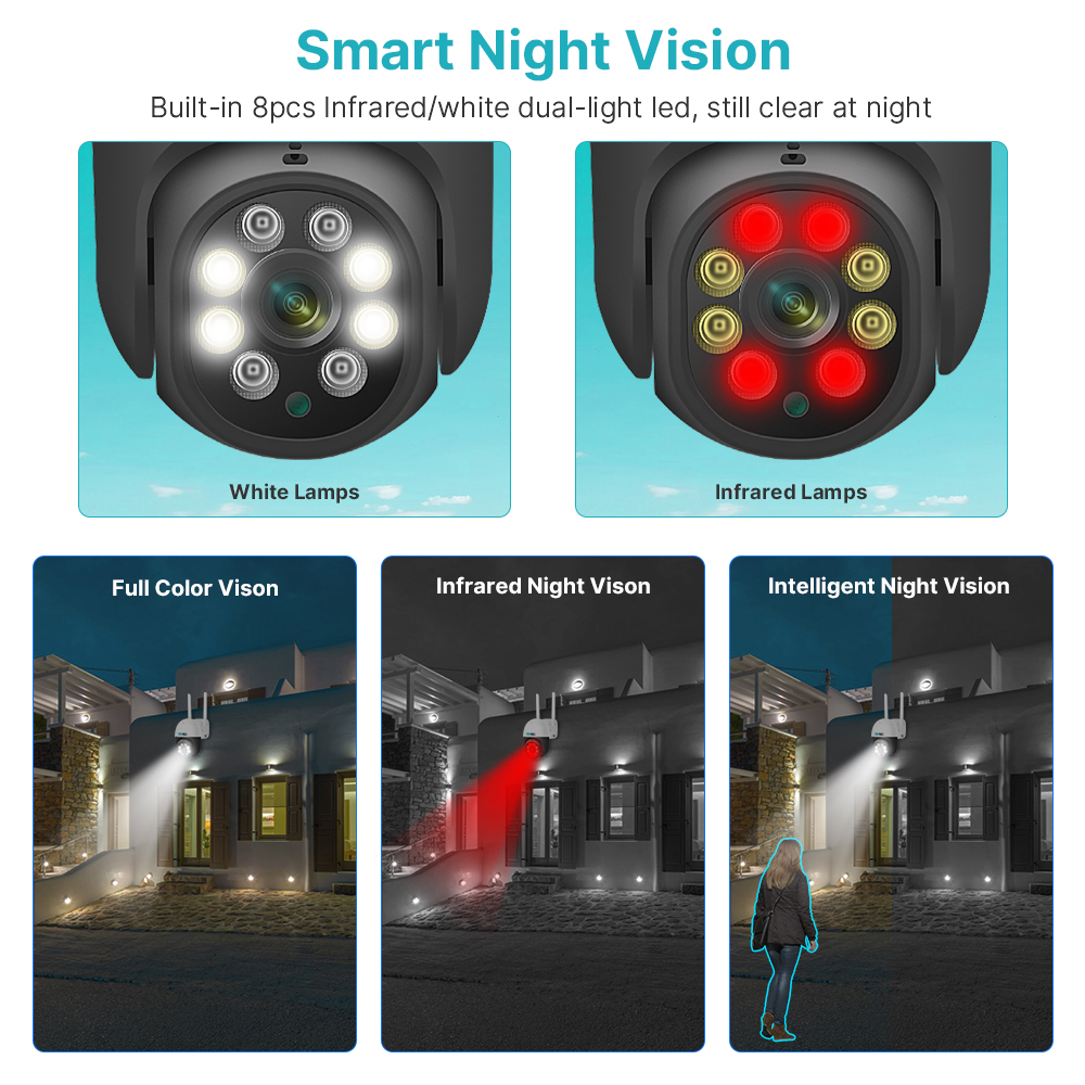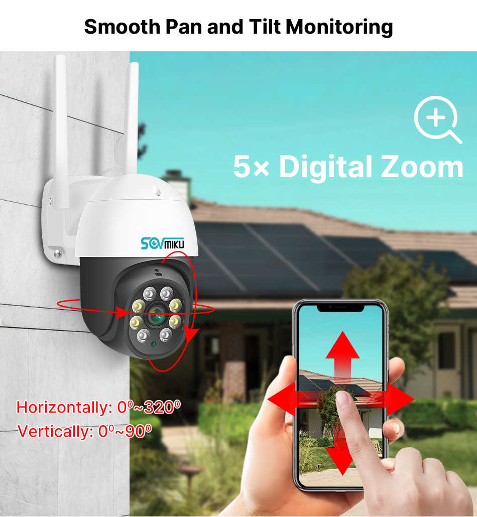 PTZ: вращается на 320 ° по горизонтали и 90 ° по вертикали, дистанционное управление для просмотра любого Коннера
