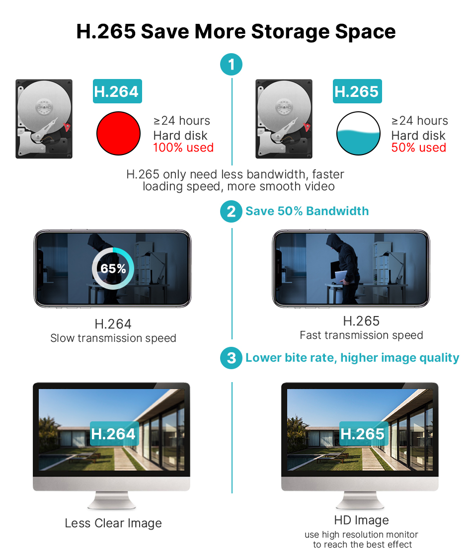 9. H.265X новый дизайн хранилища, хранилище для карт TF ниже, стабильнее и долговечнее;