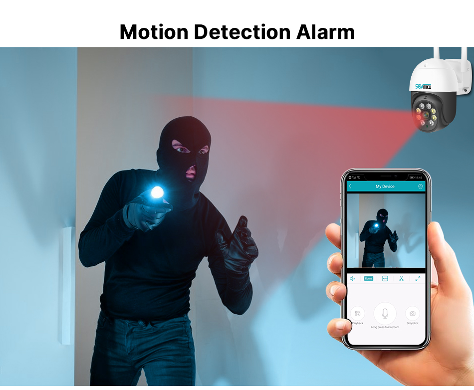 Когда камера видеонаблюдения обнаруживает движение человека, она отправит сообщение на ваш мобильный телефон.