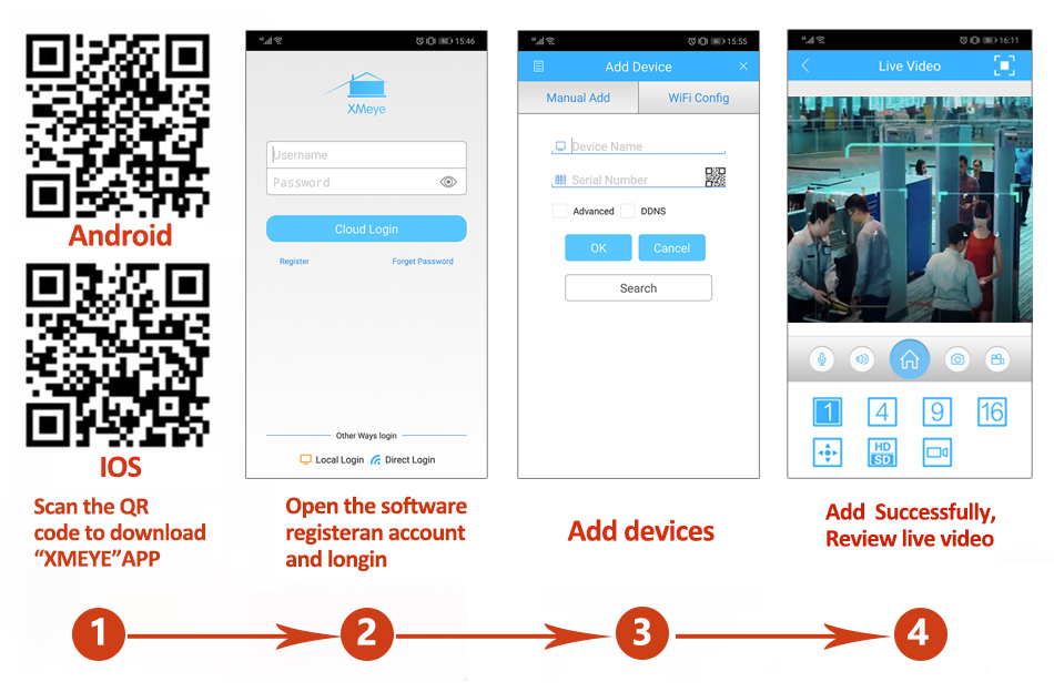 Поддержка iOS, Android, бесплатного приложения «XMEYE»