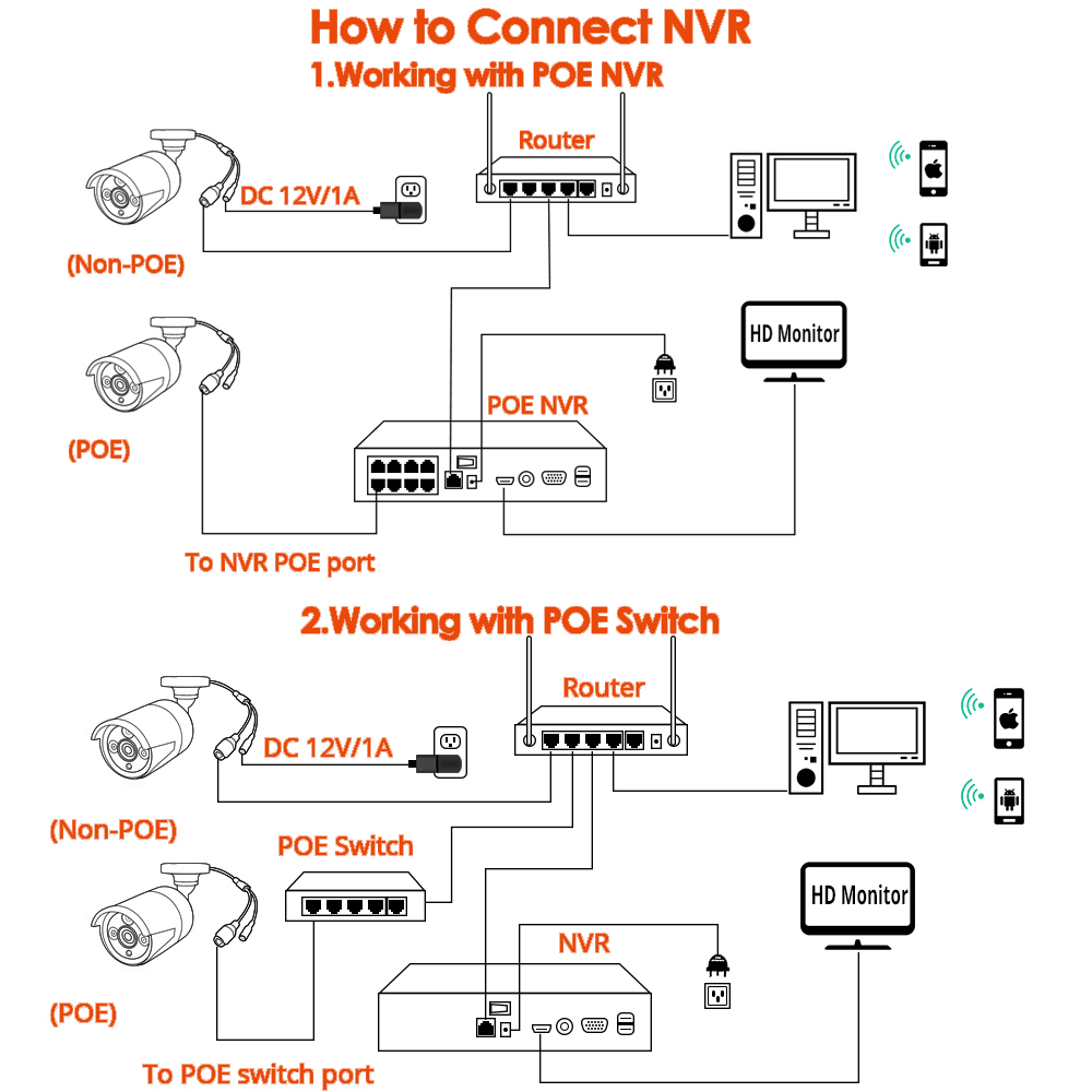 Power Over Ethernet означает, что IP-камеры подключаются к сетевому видеорегистраторУ с помощью кабеля Ethernet, который передает как данные, так и питание, нет необходимости подключать кабель питания, нет необходимости подключаться к Swither, более низкий риск утечки электричества и простота настройки. Экономьте время установки и сокращайте расходы.
