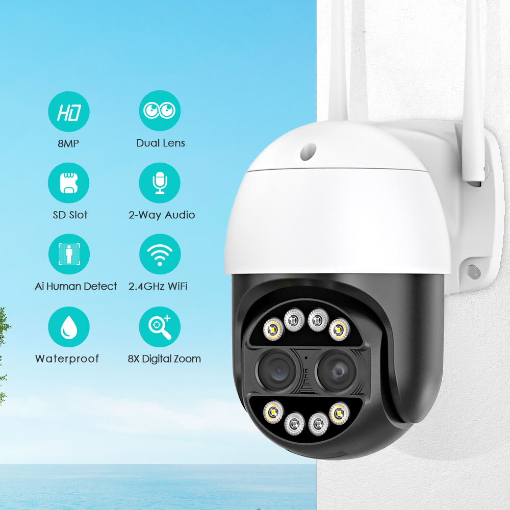 Новая 4-мегапиксельная 8-мегапиксельная камера с двумя объективами PTZ WIFI