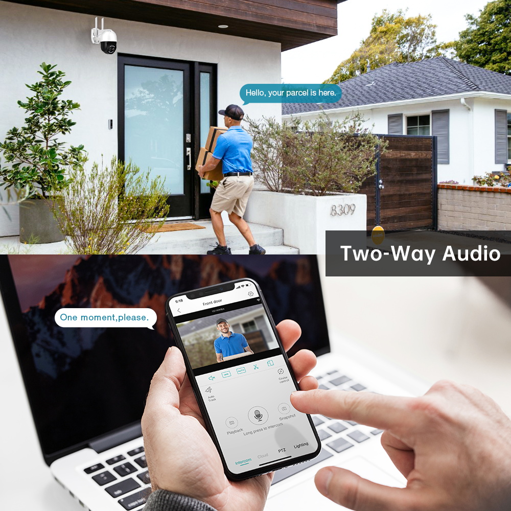 Встроенный микрофон и динамик/новые динамики с громким громкостью по индивидуальному заказу; Вы можете поговорить с любым, кто приближается к камере (предупредите кого-то, чтобы оставить свой дом).