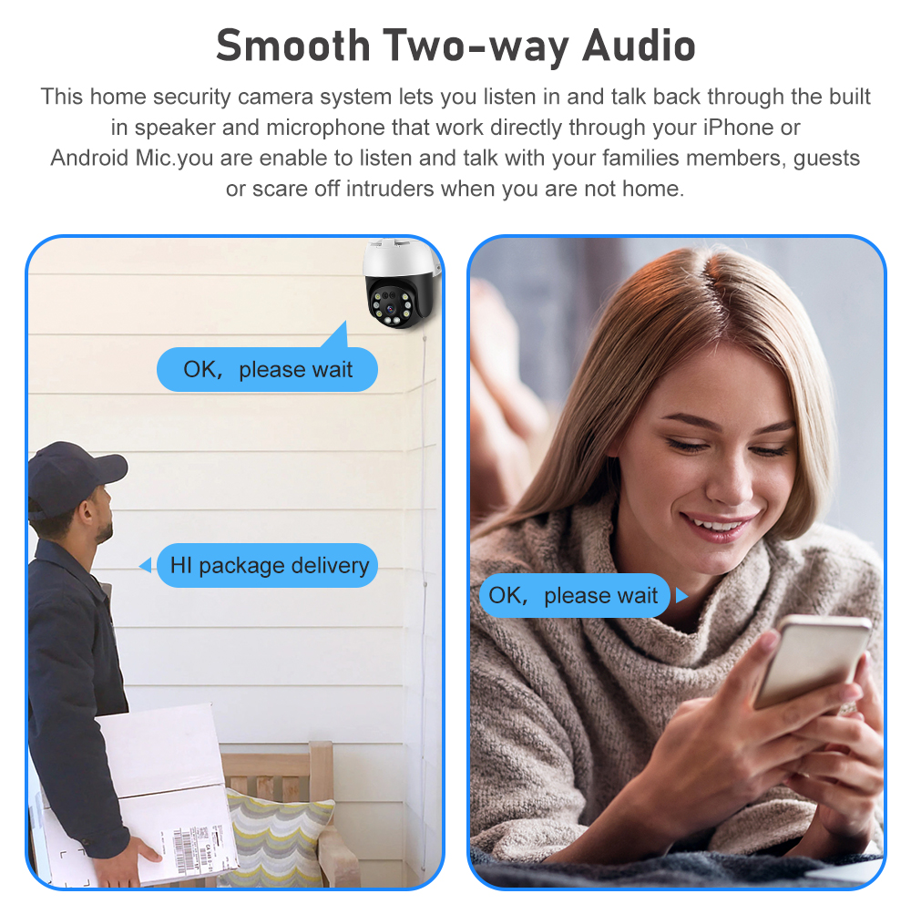 Эта домашняя система безопасности позволяет вам слушать и говорить обратно через встроенный динамик и микрофон, которые работают непосредственно через iPhone orAndroid Mic. Вы можете слушать и общаться со своими семьями, гостей отпугивает нарушителей, когда вы не дома.