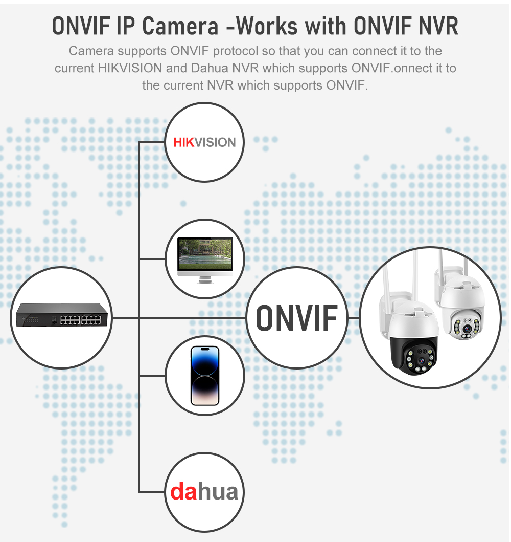 Камера поддерживает протокол ONVIF, так что вы можете подключить его к thecurrent HlKVISION и Dahua NVR, который поддерживает ONVIF. Включите его в текущий NVR, который поддерживает ONVIF
