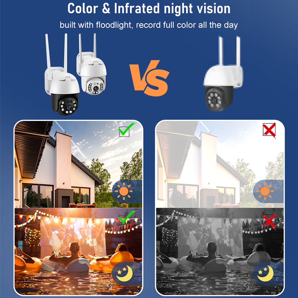 Камера PTZ использует панорамирование, наклон и масштабирование для обеспечения широкого охвата и отличной детализации с помощью одной камеры. Используйте приложение iCSee, чтобы удаленно управлять камерой вверх/вниз и влево/вправо с меньшим количеством слепых зон. Одна PTZ камера может выполнять расширенную съемку, особенно для больших площадей без ограничений.