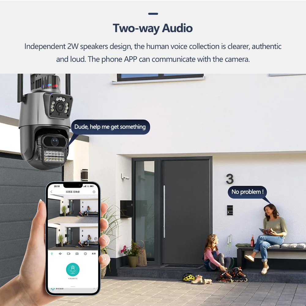 Эта система домашней камеры безопасности позволяет вам слушать и разговаривать через встроенный динамик и микрофон, которые работают напрямую через микрофон вашего смартфона. Наслаждайтесь удобным общением, когда отдыхаете или работаете.