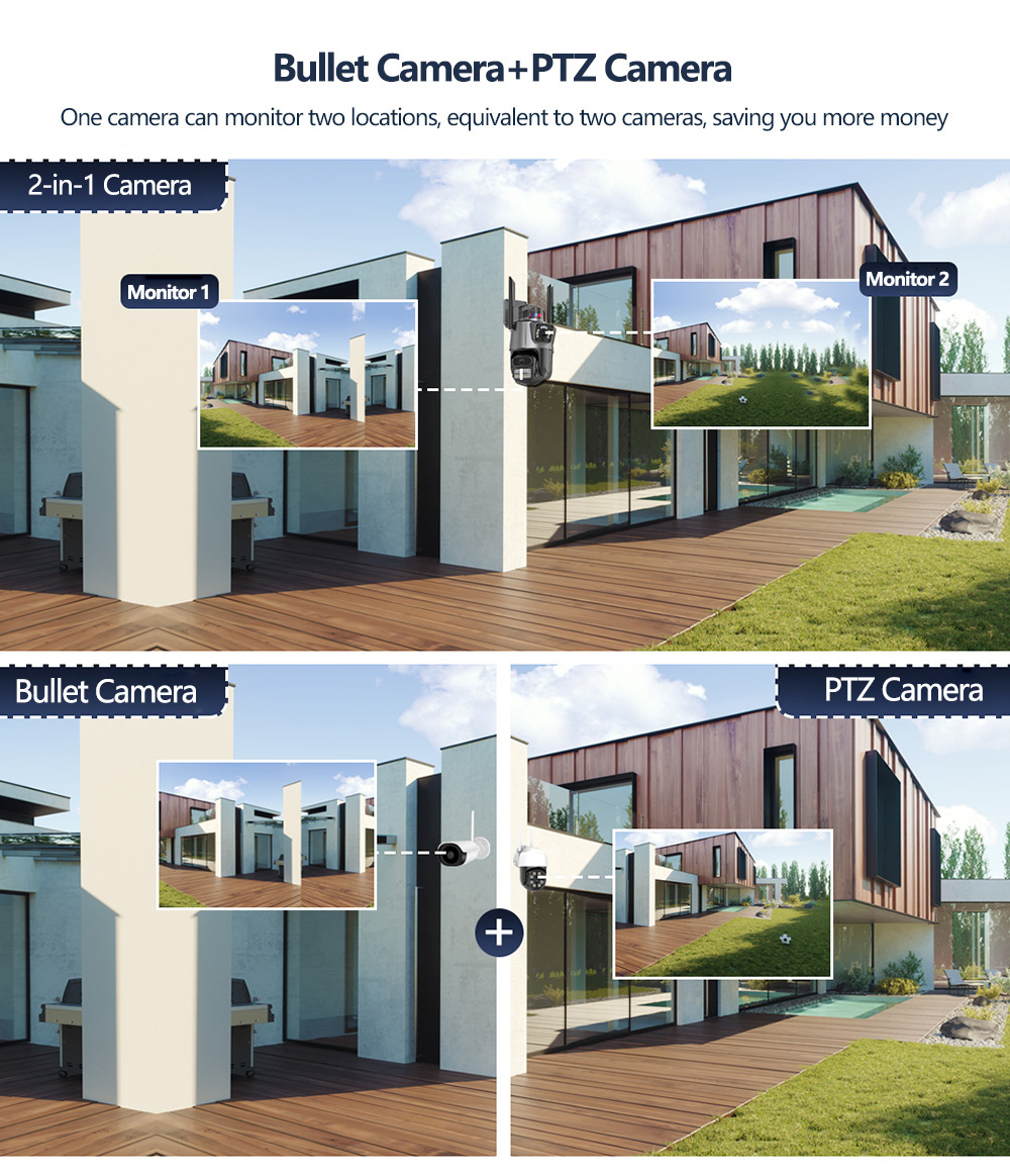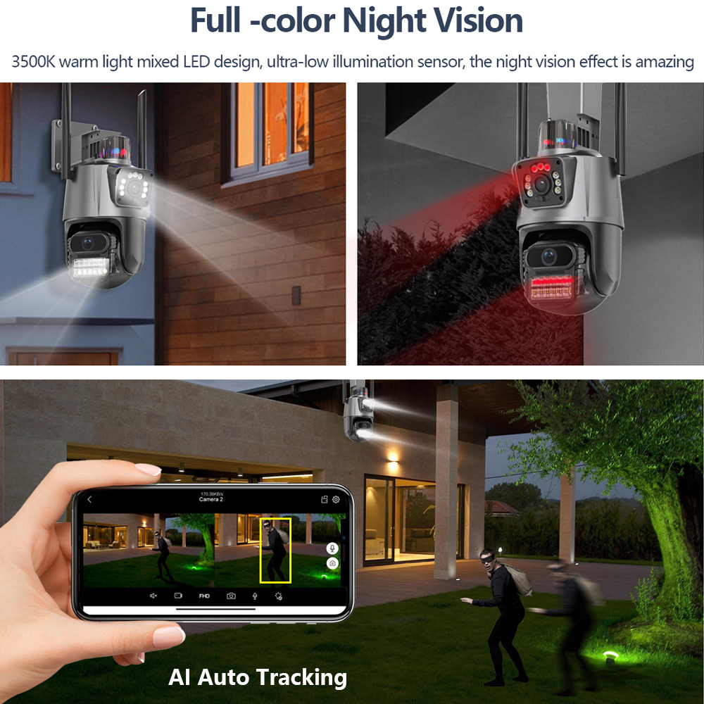 8MP 4MP 4K IP-камера Наружная PTZ с двумя объективами Двойной экран Ai Автоматическое отслеживание Водонепроницаемая камера видеонаблюдения Wi-Fi
