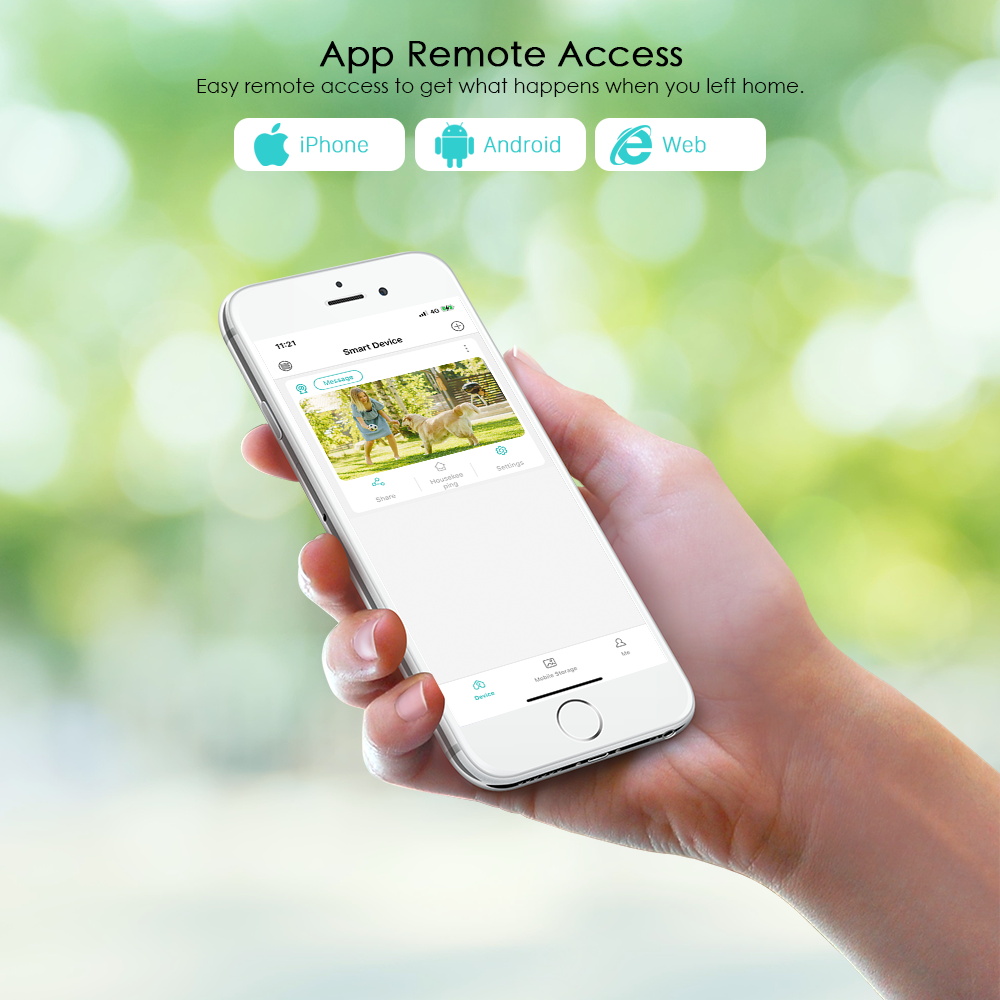 Эта домашняя система безопасности позволяет вам слушать и говорить обратно через встроенный динамик и микрофон, которые работают непосредственно через iPhone или Android Mic. Наслаждайтесь удобным общением, когда вы отдыхаете или занимаетесь бизнесом.