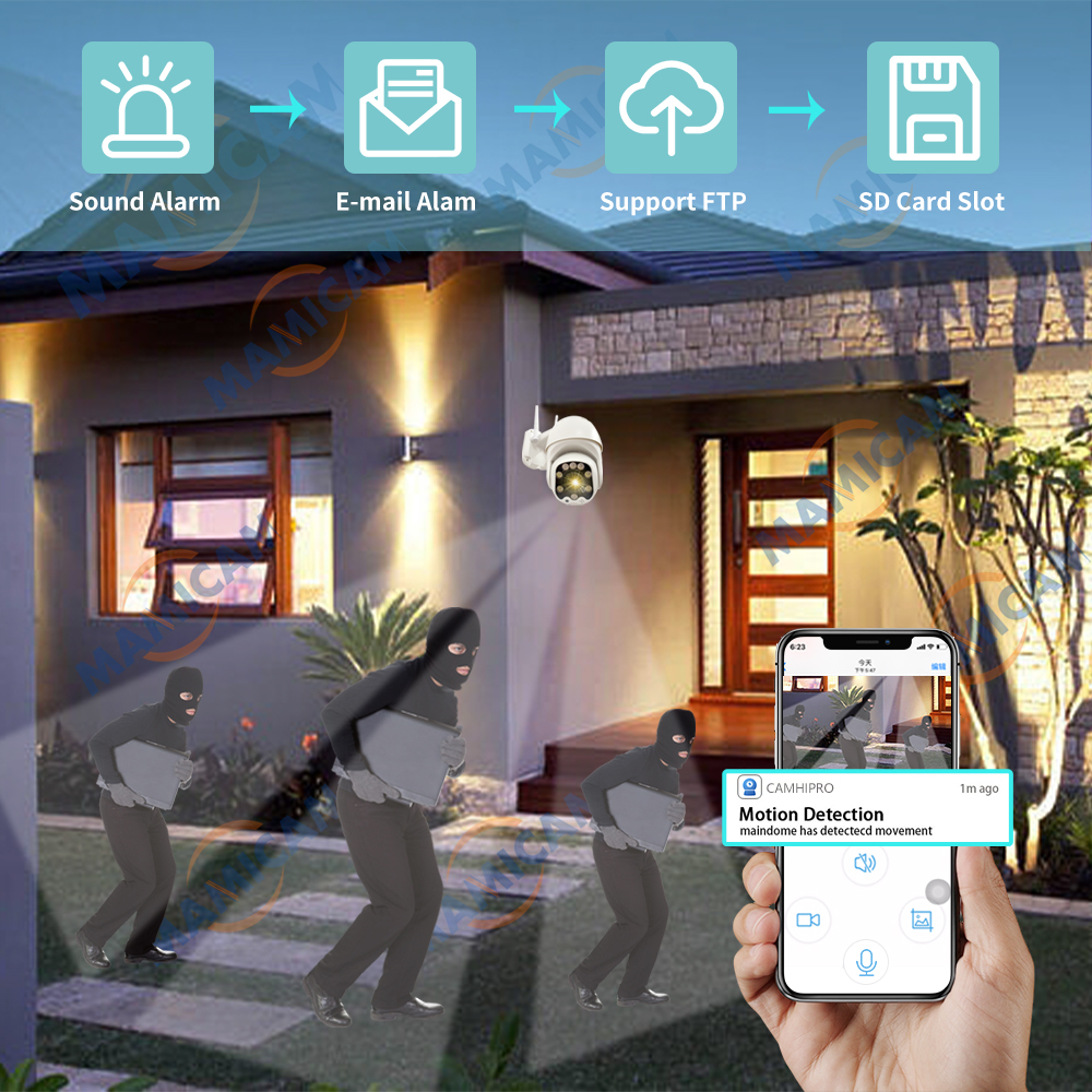 Автоматическое обнаружение движущихся объектов и срабатывание сигнализации при возникновении опасности. Эффективно Защитите свой дом от потерь, вызванных вторжением. Yoursquoll получает мгновенное тревожное электронное письмо с изображениями, снятыми при вторжении в дом.