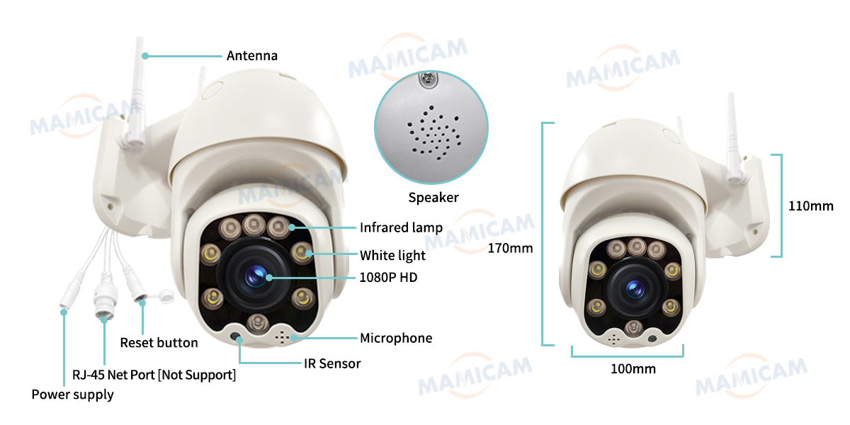 -PTZ управление: вращение 355 градусов по горизонтали и поворот на 90 градусов по вертикали. Мобильный телефон может контролировать угол поворота стабилизатора, и вы можете видеть необходимое направление.