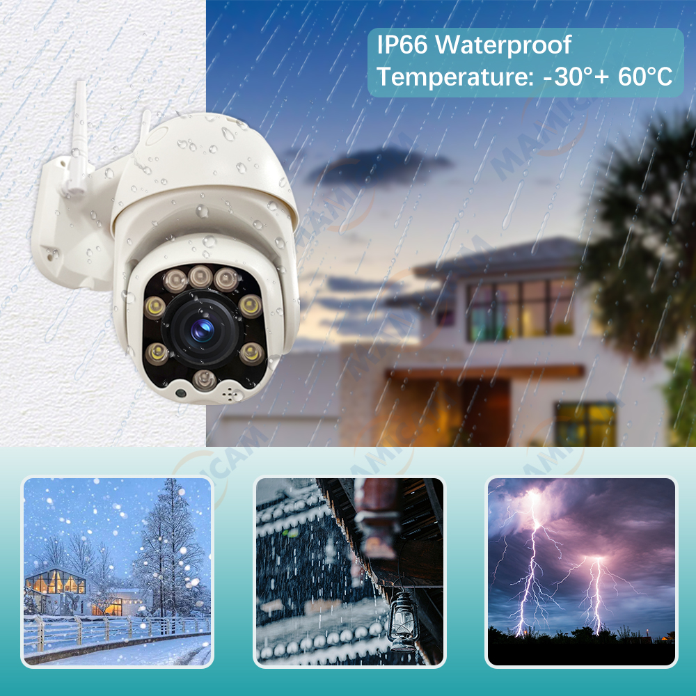 Благодаря профессиональной водонепроницаемой конструкции IP66 ваша камера будет нормально работать при температуре-20 ° ~ 60 °, что означает, что он достаточно прочен, чтобы работать в суровую погоду, такую как шторм и Снежная погода, и всегда ставить вашу безопасность на первое место.