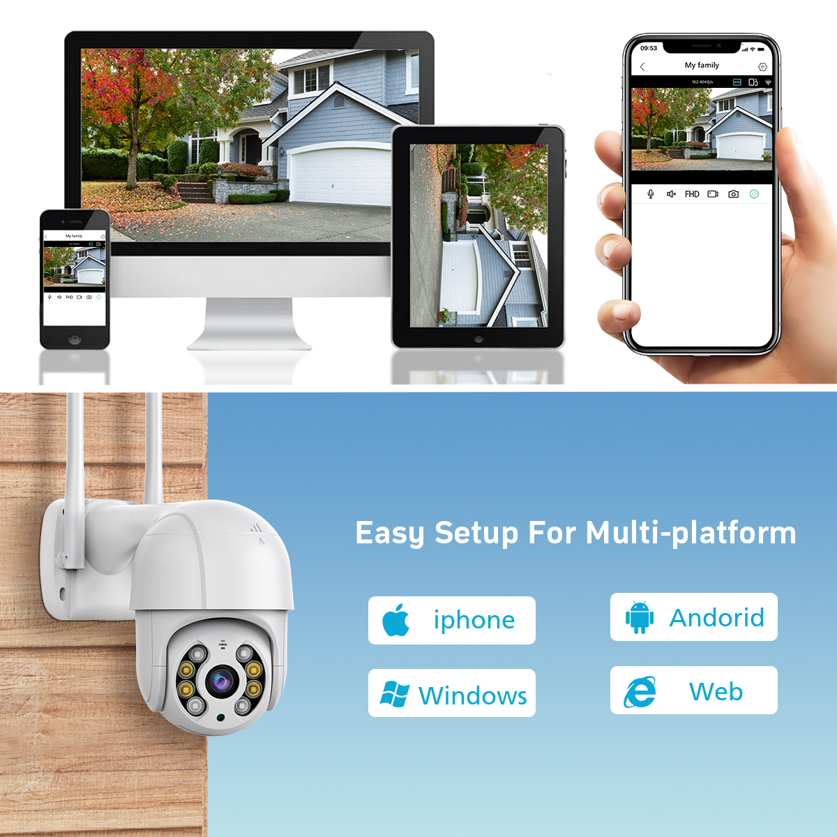 Поддержка двусторонней голосовой связи: Встроенный высококачественный водонепроницаемый микрофон, четкий звукосниматель, вы также можете вести домофон в реальном времени через мобильный телефон для решения различных чрезвычайных ситуаций.