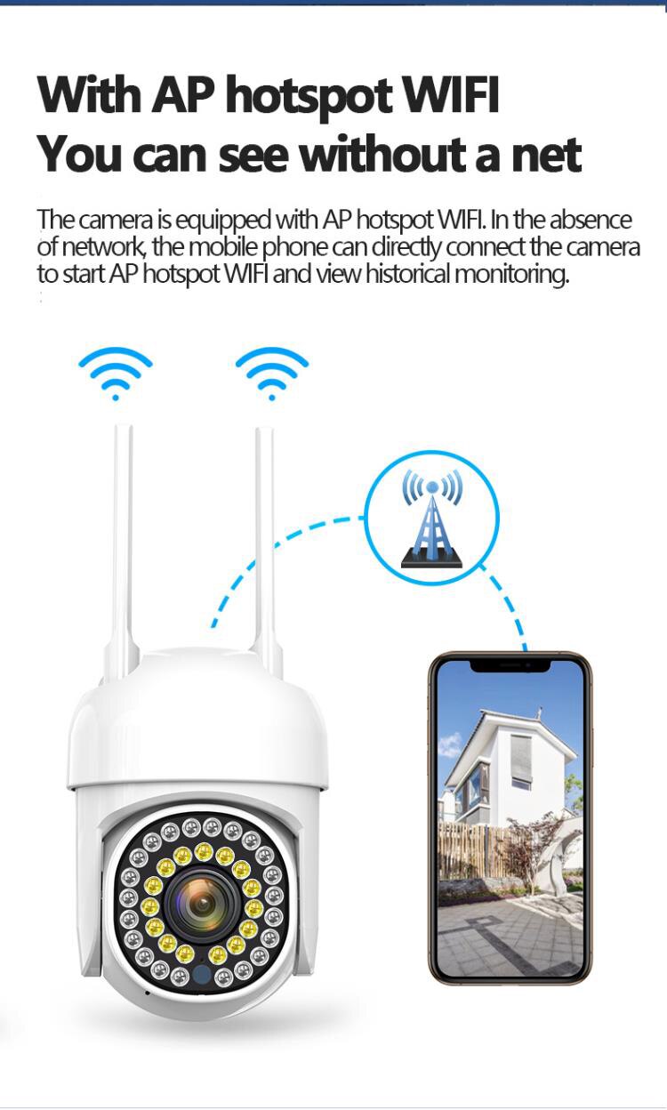 【Простота настройки, простота установки】Используйте мобильный телефон, чтобы загрузить приложение, и Используйте приложение, чтобы помочь камере подключиться к Wi-Fi. Подключитесь к приложению, и готово! Камера поддерживает Облачное хранилище и карту памяти Micro SD 8-128 ГБ.
