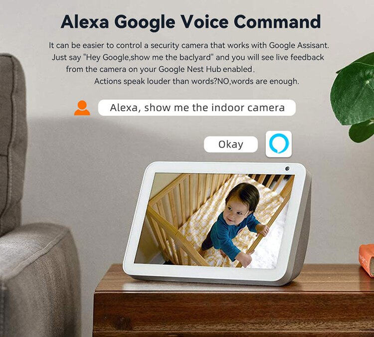 【Удаленный доступ, совместное использование и работа с Alexa】Вы можете поделиться своими камерами с семьей, друзьями и другими устройствами, чтобы посмотреть, что произошло в любое время. Можно поделиться до 20 пользователями (только через первый мобильный телефон), совместим с Alexa и Google Assistant. Внутренняя камера и приложение просты в установке, просты в управлении.