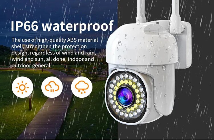 【Наружная водонепроницаемость】Эта наружная камера Wi-Fi поддерживает Водонепроницаемость и Пыленепроницаемость, может использоваться как в помещении, так и на улице.