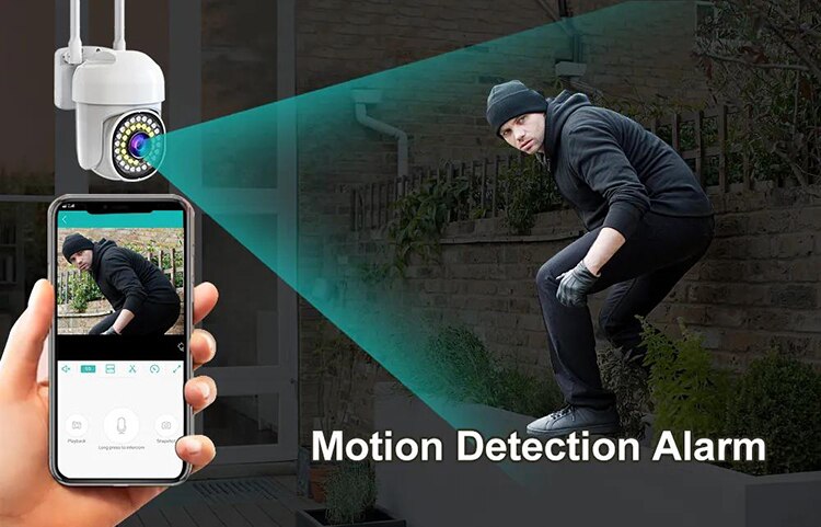 【Обнаружение движения + оповещения в реальном времене】Эта камера видеонаблюдения Wi-Fi использует высокочувствительный датчик движения, Подключите камеру к Wi-Fi, при обнаружении движущегося объекта она записывает движущееся изображение и уведомляет вас через приложение.