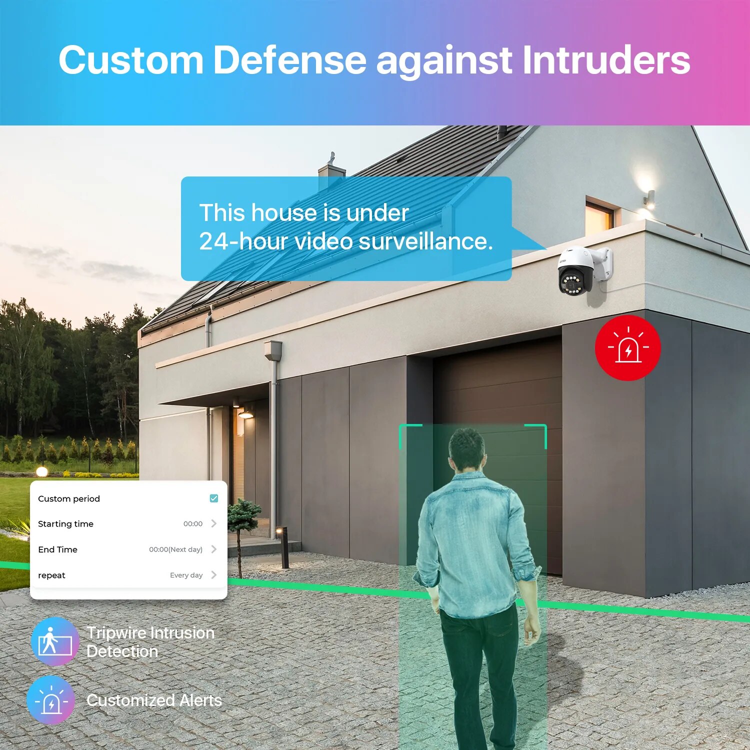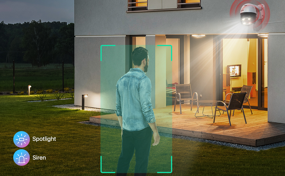 ZOSI C296 5MP 3K PoE PTZ-камера на открытом воздухе с обнаружением человека в транспортном средстве AI Face и сиреной, ночное видение Starlight, автоматическое отслеживание, прожекторы, двустороннее аудио, панорамирование/наклон, удаленный доступ, SD карта памяти