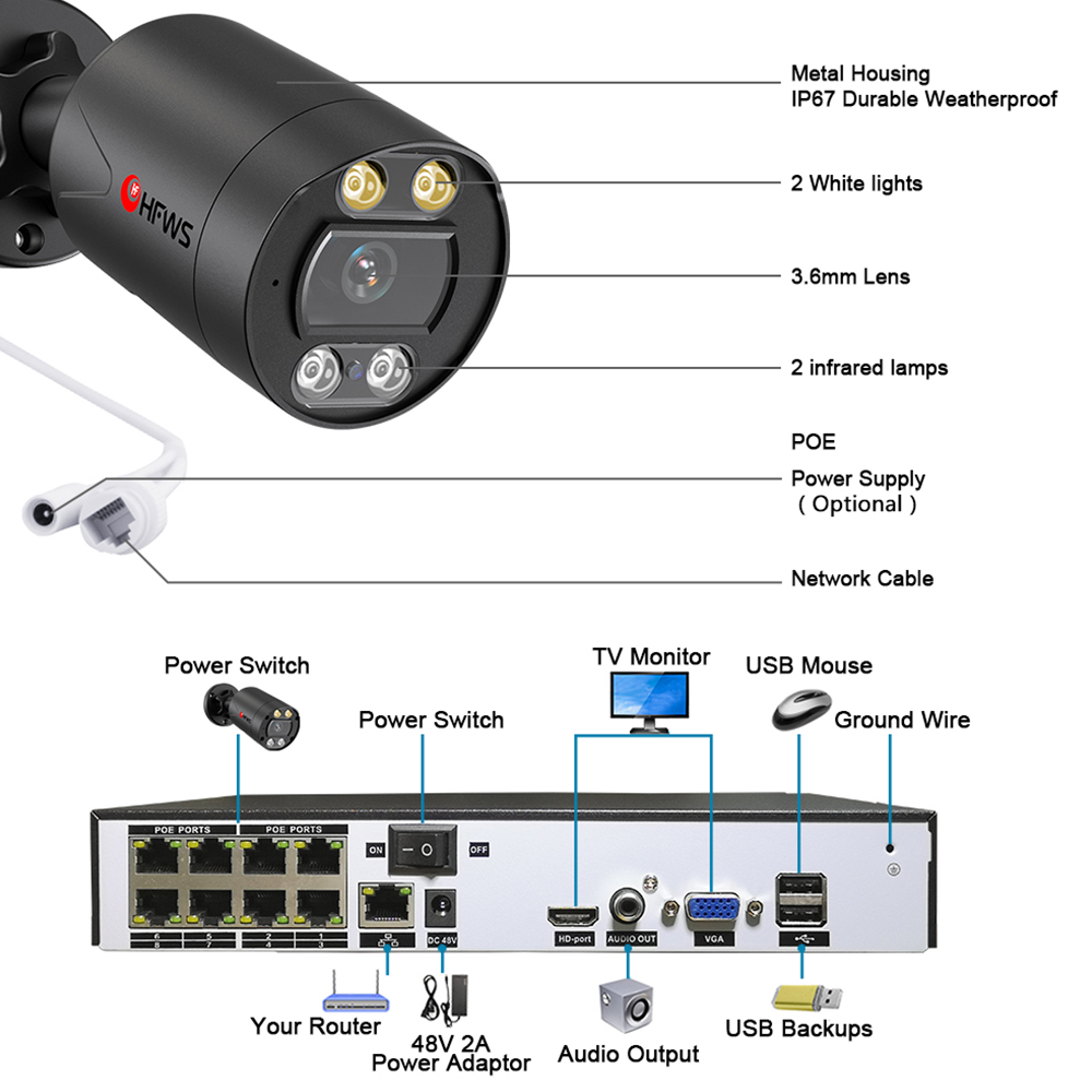 Ip-камера наружного видеонаблюдения, 8 Мп, Poe, 4K