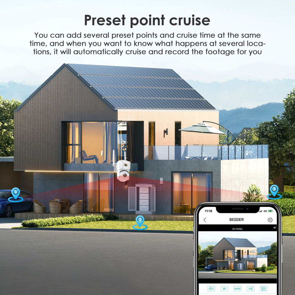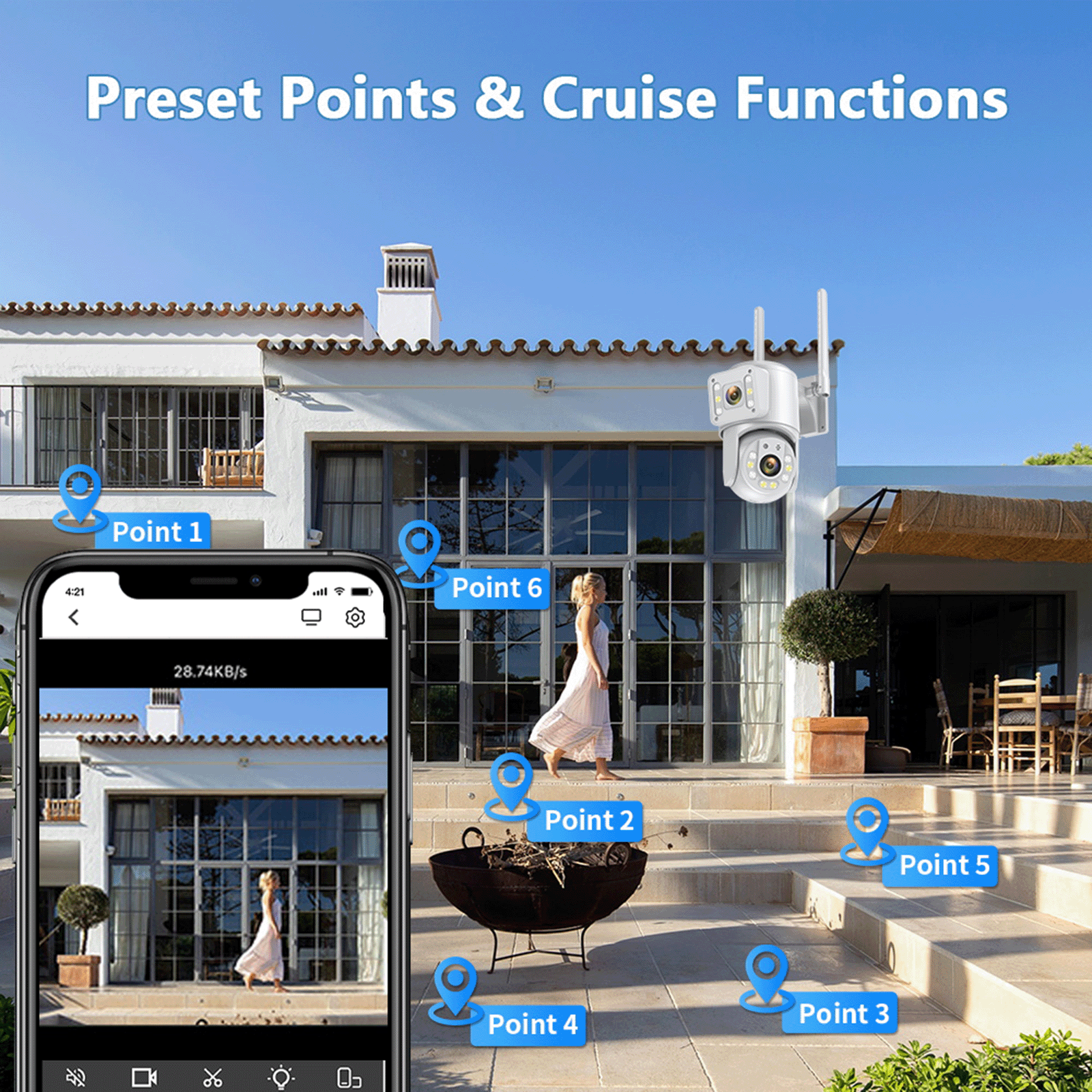 Эта камера наблюдения имеет предустановленную точку и функцию круиза, что позволяет одновременно добавлять несколько предустановленных точек и устанавливать время круиза. Если вы хотите следить за действиями в разных местах, он автоматически отправляет и записывает кадры для вас.