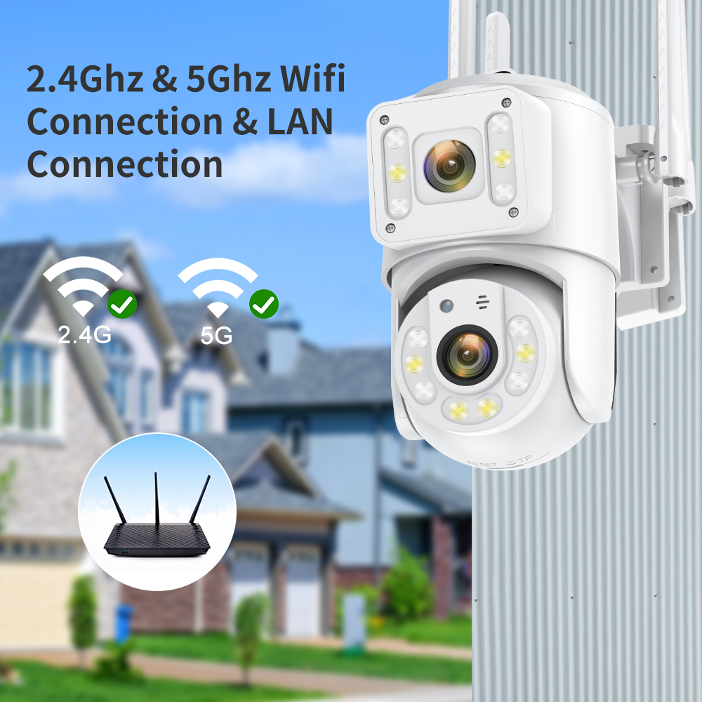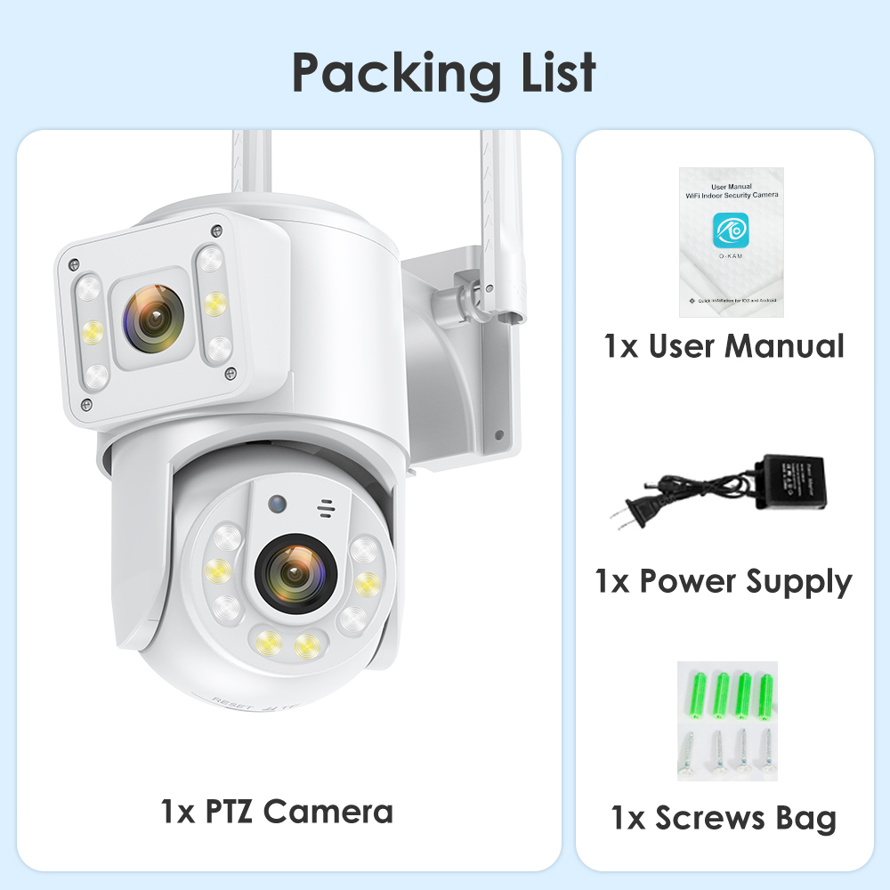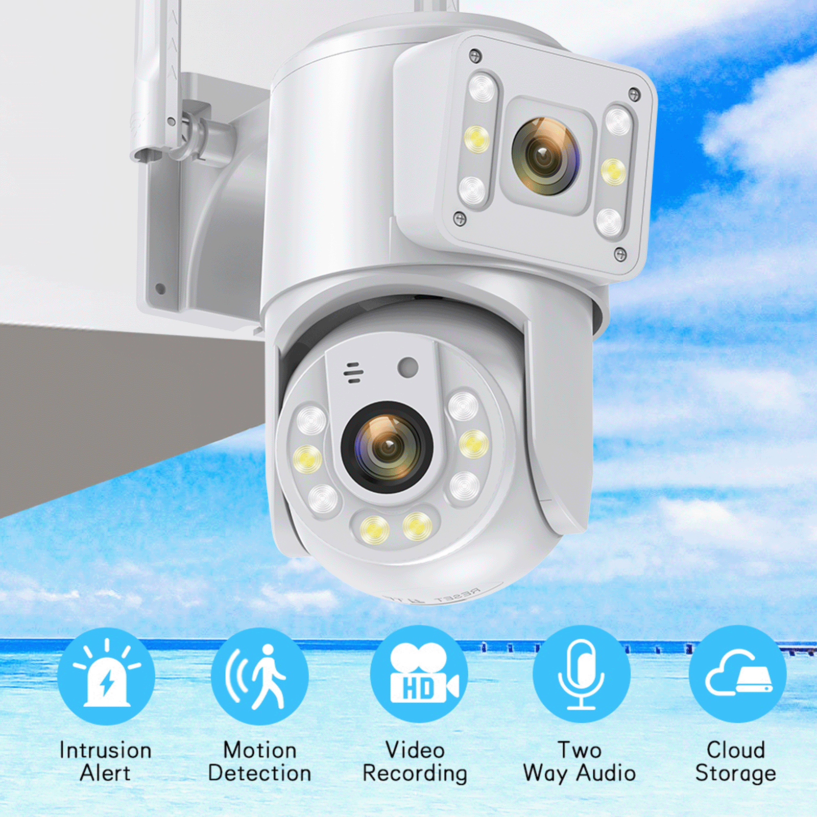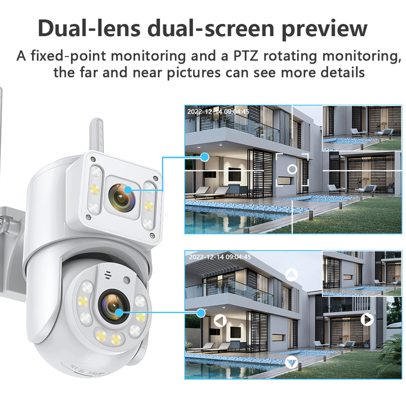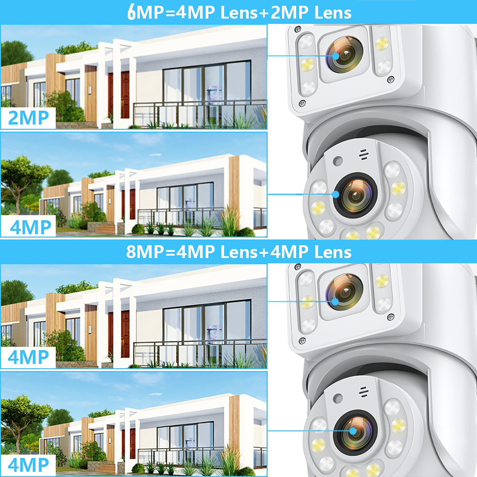 Камера наблюдения имеет конструкцию с двумя объективами с объективами 3,6 мм и 8 мм. Он включает в себя широкоугольный объектив 4 мм для наблюдения с близкого расстояния и с широким обзором, а также телеобъектив 8 мм. Пользователи могут переключаться между различными объективами для достижения различных визуальных перспектив по мере необходимости.