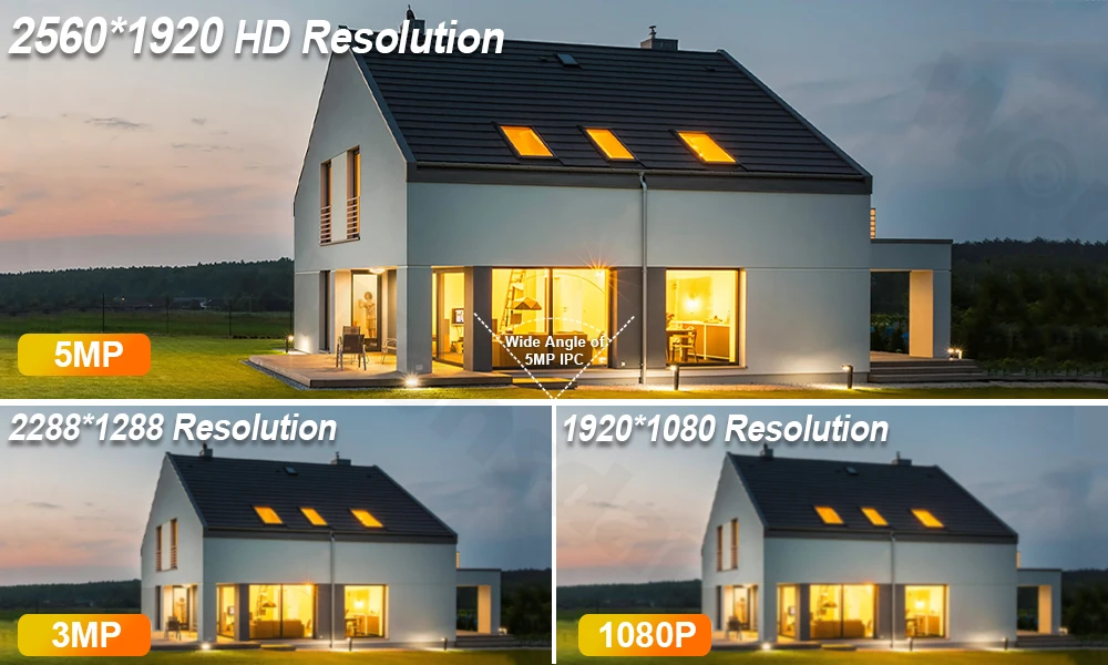 -5MP/1080P 2 вида пикселей на ваш выбор. 5MP имеет более высокое разрешение-лучше, чем 1080P. Принесет вам плавное воспроизведение видео