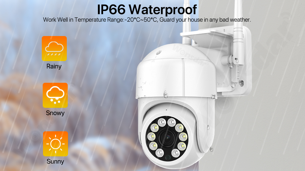 Оснащен водонепроницаемым уровнем IP66, чтобы камера выдержала различные суровые условия. Рабочая температура-20 ° ~ 50 °, вы можете абсолютно легко положить его на улицу
