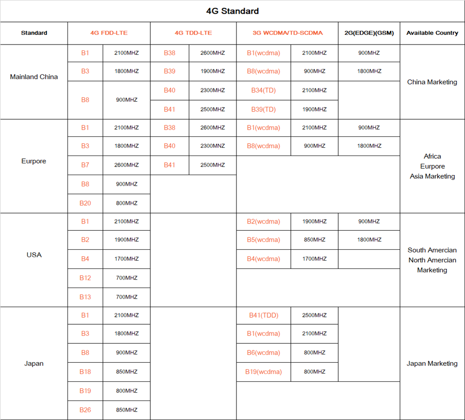 -Если ваша сим-карта не находится в следующих частотных диапазонах, камера 4G работать не будет.