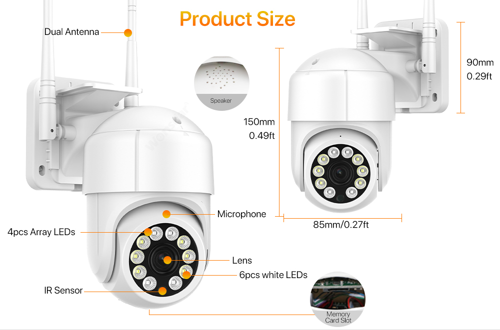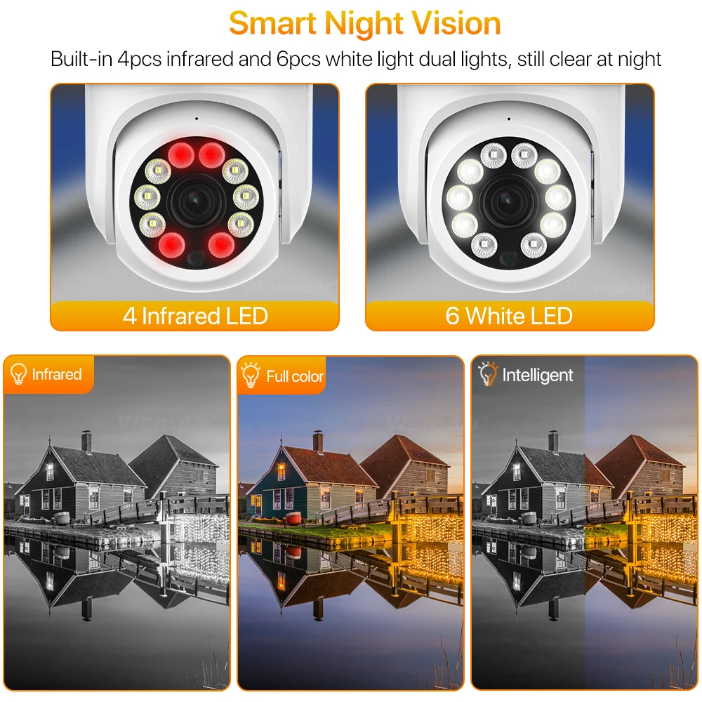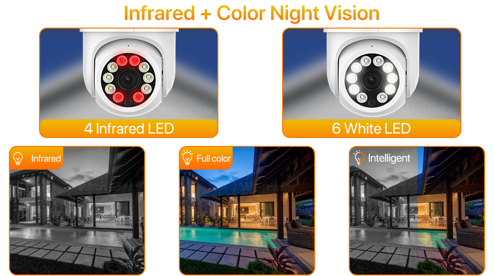 -Оснащенный 6 белыми светодиодами и 4 высокоэффективными инфракрасными светодиодами, он может предоставить вам красочные Эффекты изображения высокой четкости независимо от дня или ночи.