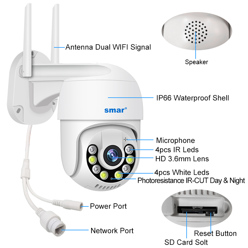 IP-камера Smar, 1080P, 3 Мп, PTZ, Wi-Fi
